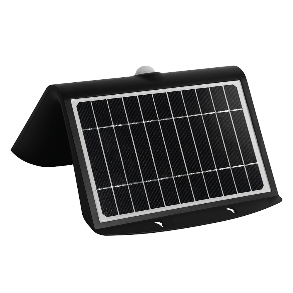 Applique solaire Duo noir 3000°K - 8W - 850Lm - détection IR - éclairage avant balisage arrière - faisceau 90° - panneau 4,4W - batterie Li-ion 4000 mAh/3,7V remplaçable / IP65 -polycarbonate-ABS-anti-UV - mode fixe ou veille+détection