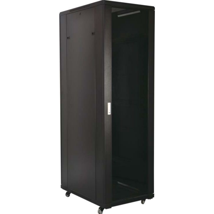 Baie 19'' 42U 600x600 porte vitrée noire montée
