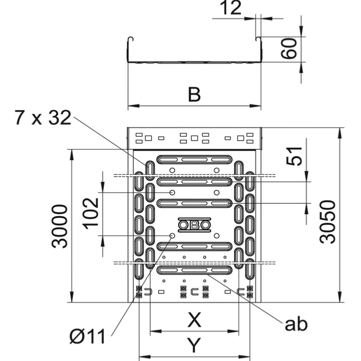 Chemin de câble avec système de fixation rapide intégré, il dispose d'une perforation latérale continue de 7x20mm pour l'installation de montage et de raccordement supplémentaires.