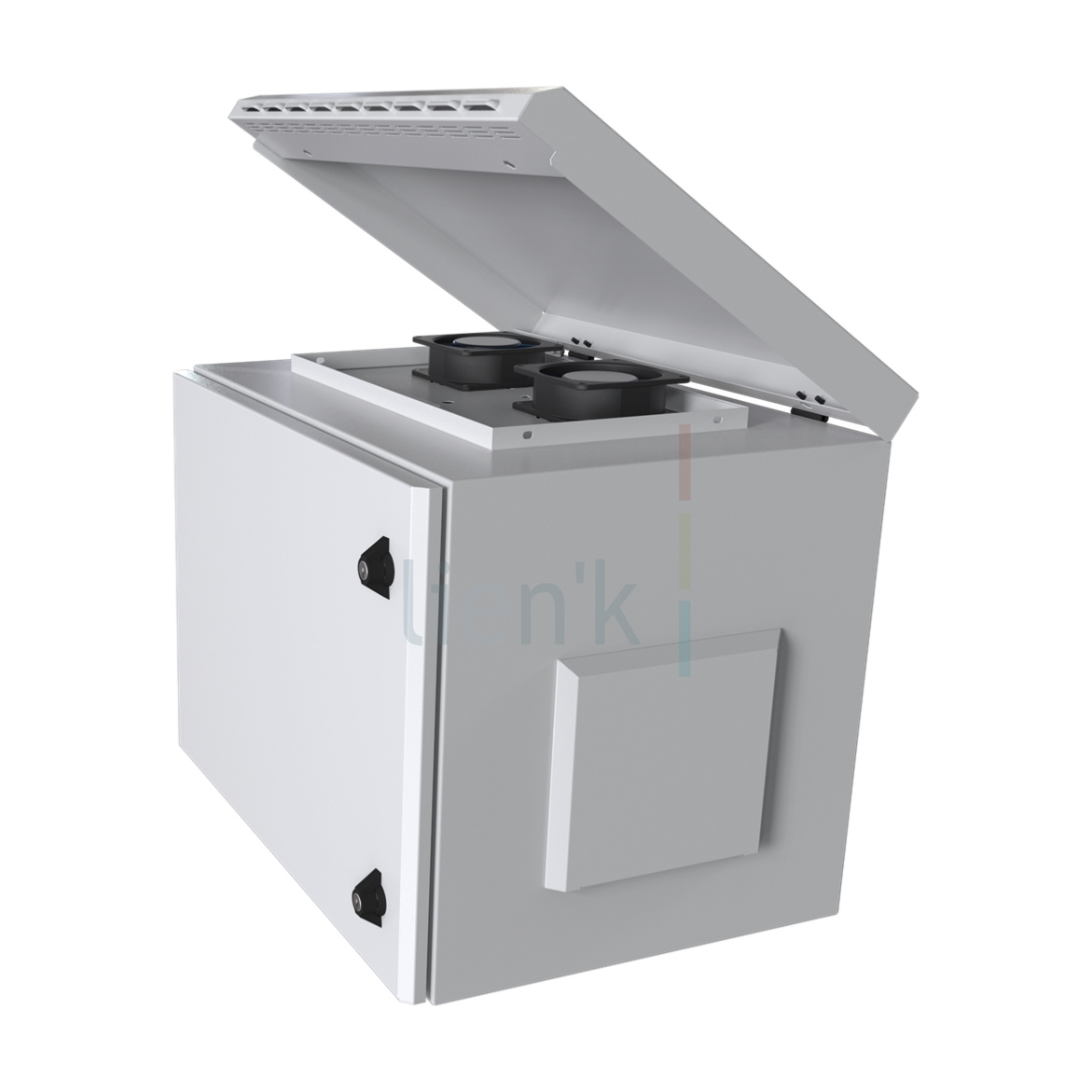 Le toit s'articule afin d'améliorer la ventilation passive ou en option d'un ventilateur IP55 Plug and Play.