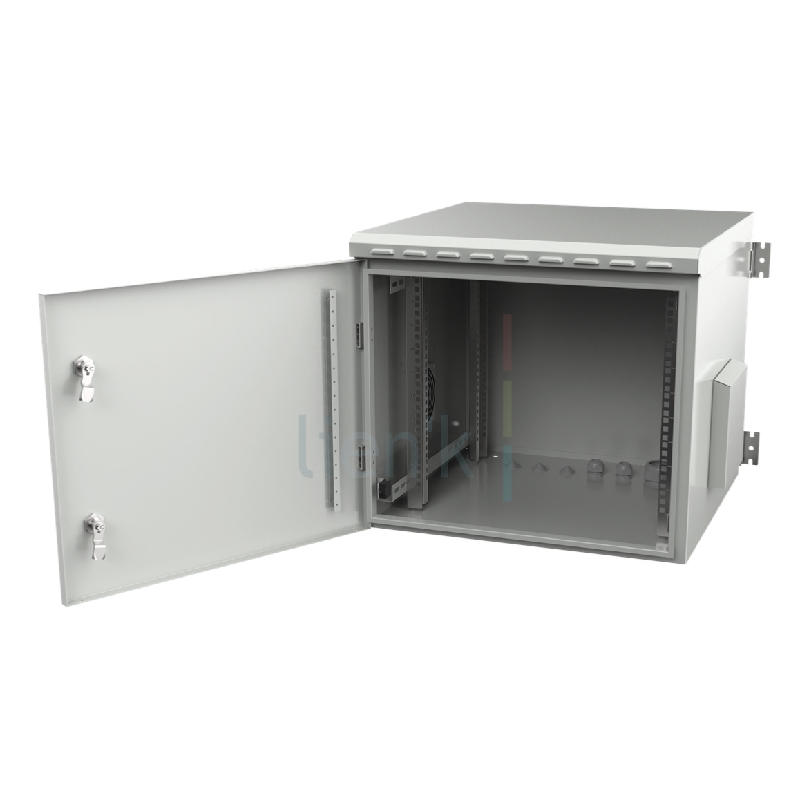 Le coffret industriel IP55 19 pouces est constitué d’un cadre soudé en tôle d’acier monté ainsi que d’une porte acier avec renfort et d’un verrouillage à 3 points selon la norme DIN 18252/EN1303. Les panneaux latéraux ne sont pas démontables et l’ensemble du coffret est entièrement mise à la terre.
