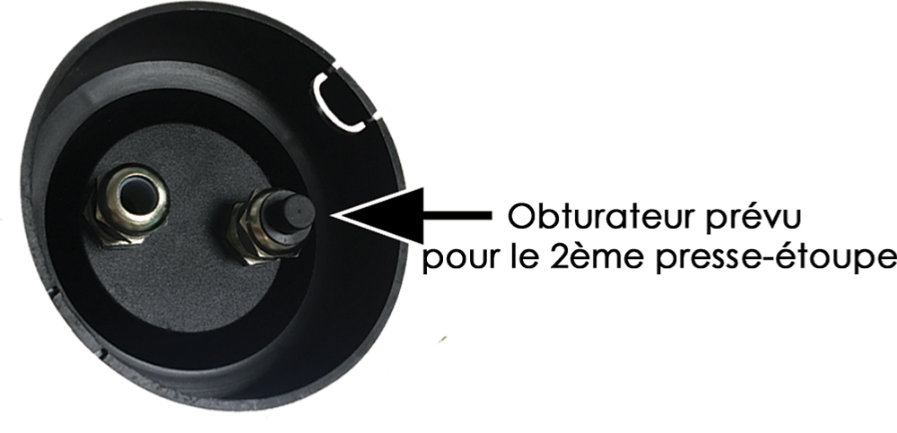 Accessoires inclus : Pot d'encastrement / douille GU10 et GU5.3 / verre trempé et verre sablé / obturateur pour le 2eme presse étoupe