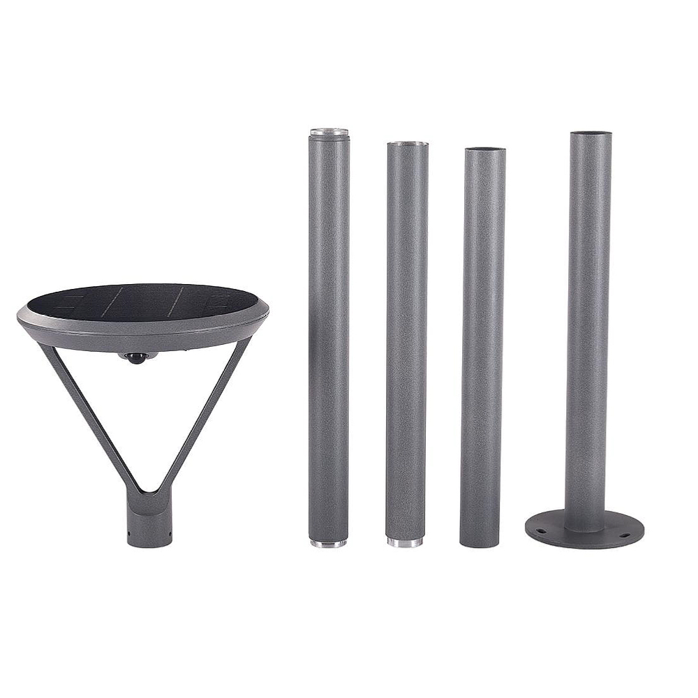 Lampadaire solaire double détection IR - 3000°K - 2000Lm - Faisceau 360° - 2000Lm - Panneau solaire 6,5W - Batterie Li-ion 8000mAh/3,7V - IP65/IK10 - Kit complet inclus éclairage + 3 tubes 60cm + fixations + vis de fixation