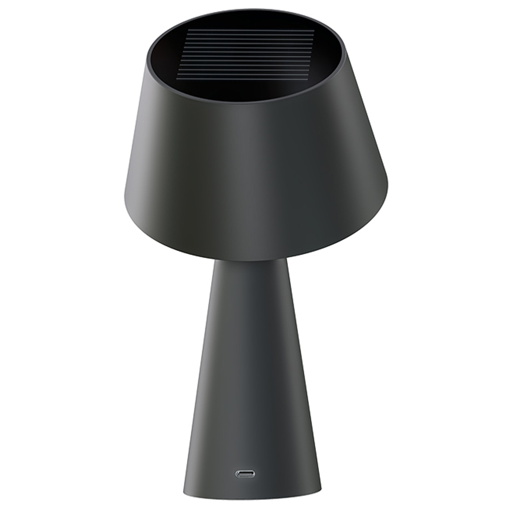 Lampe de table noir mat solaire et USB (inclus) - 3000°K - faisceau 120° - 500Lm à 100% - Panneau solaire 0.5W / batterie 7.4WH/3.7V- IP65/IK07 - 4 modes possibles