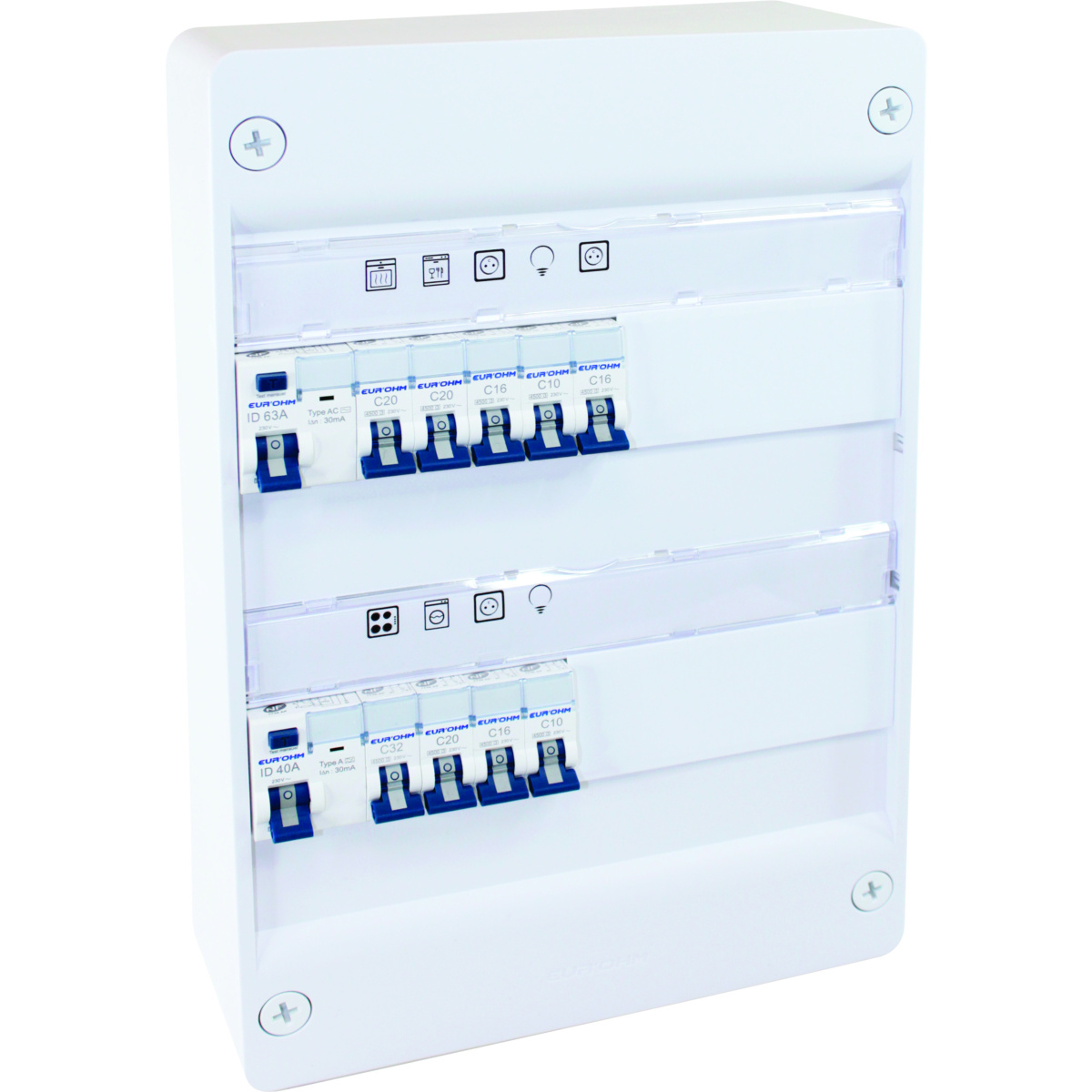 - 2 disjoncteurs 1P+N 10A