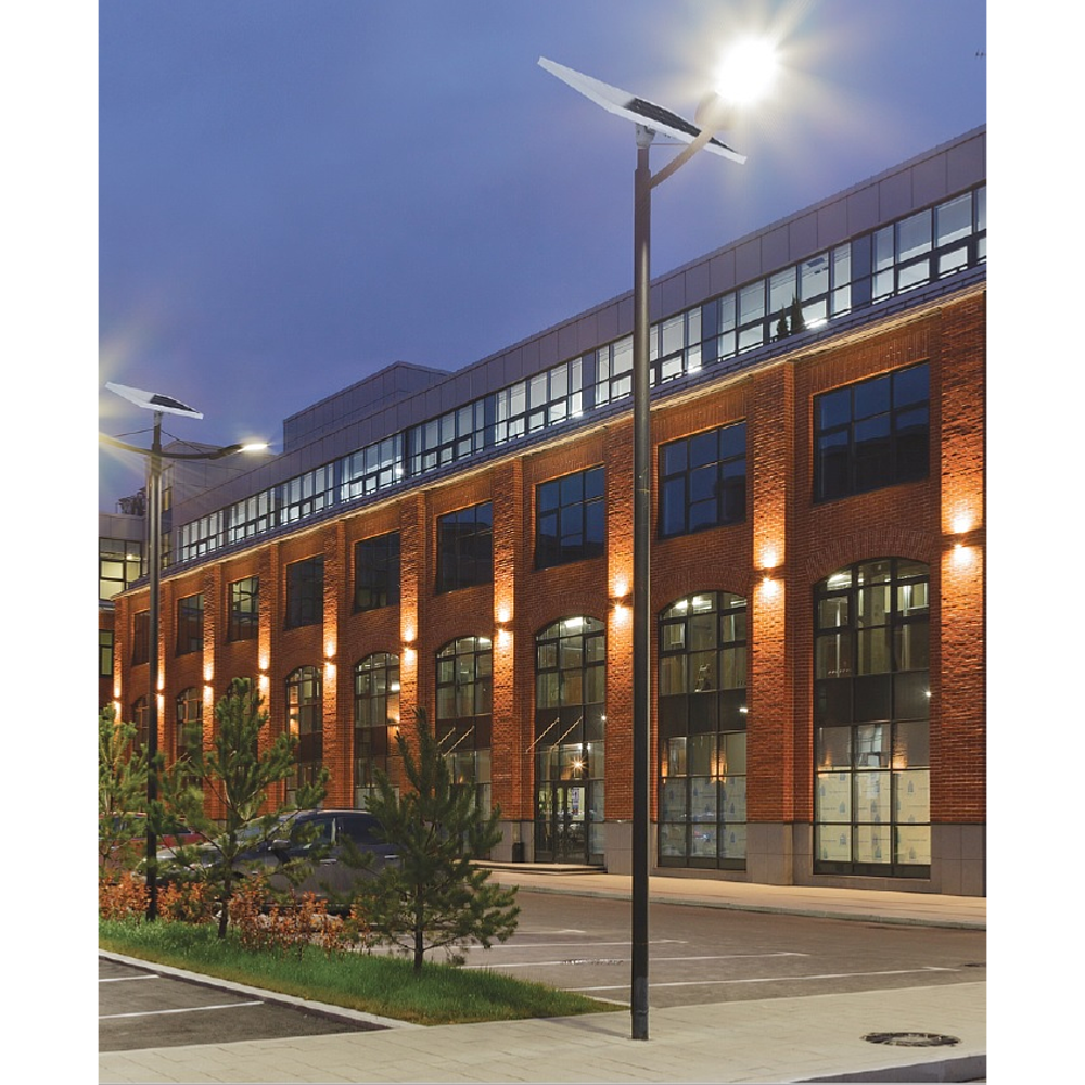 Tête de mât Laguna 60W à détection Télécommandé - 3000°K - Faisceau asymétrique 140° latéral/70° longitudinal 10400 Lm - IP65/IK08 Panneau solaire 80W Batterie Li-ion 36 Ah/11,1V Pour mât diam 60mm Panneau orientable 240°/360° verticalement