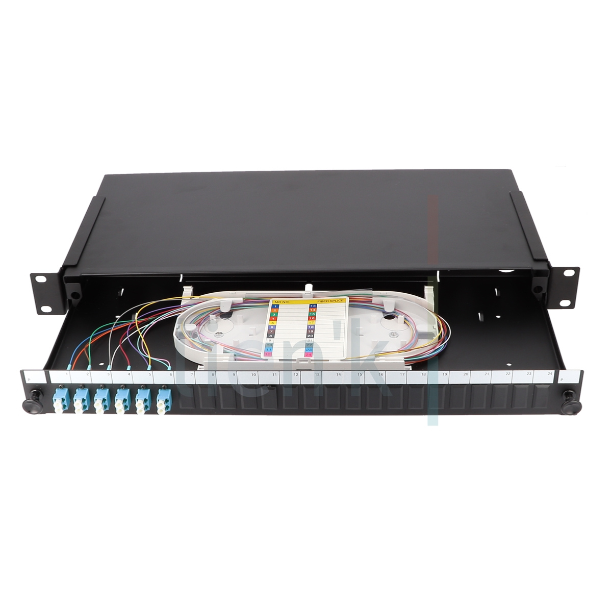 Tiroir Optique 6xLC Duplex OS2 12 Pigtails K7 + 18 Bouchons + Kitacce
