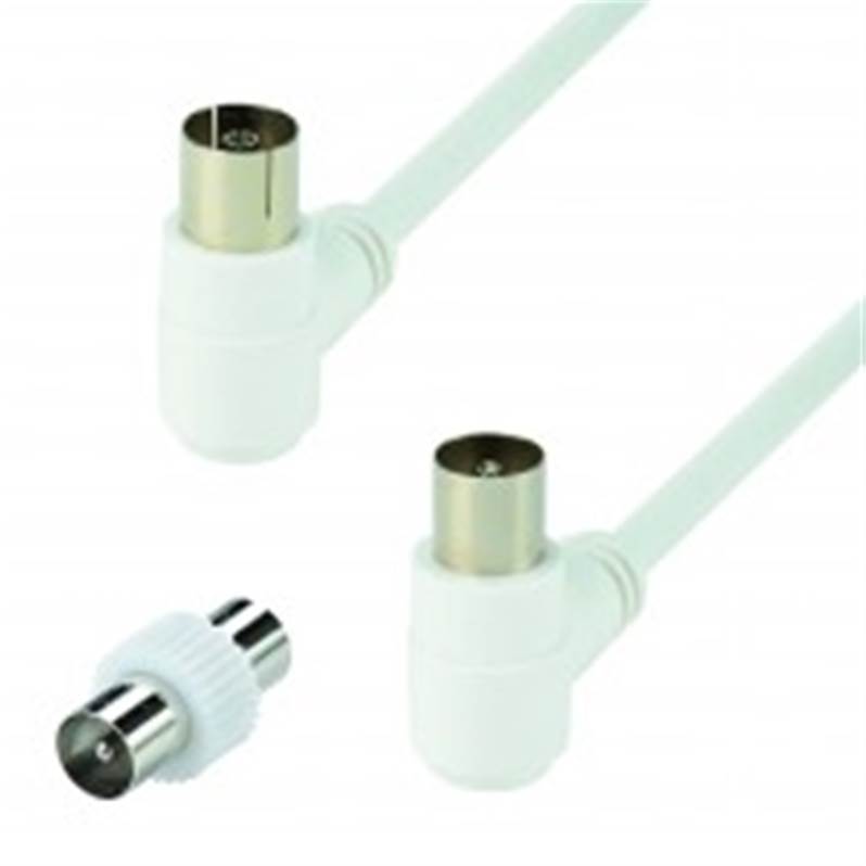 Cordon TV 9.52 mm M/F coudé à 90° + adaptateur TV 9.52 mm M/M - 0.8m